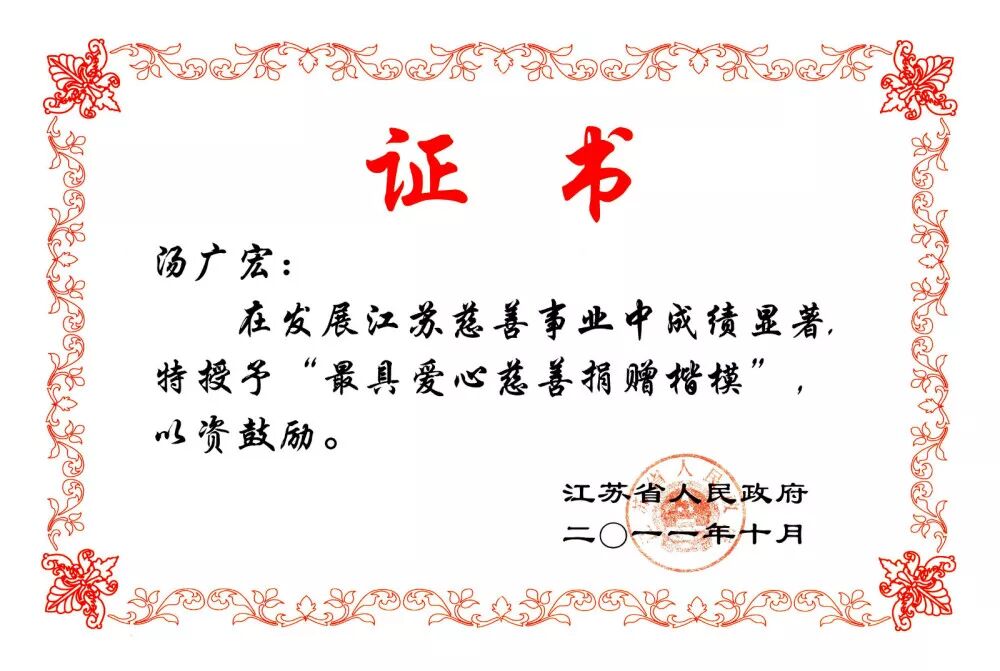 磊达集团的爱心善举多次受到国家、省和盐城市表彰,先后被评为全国文明单位,江苏省文明单位标兵,江苏省优秀民营企业。董事长汤广宏被表彰为江苏省第十一届精神文明建设新人新事和江苏省最具爱心慈善捐赠楷模。