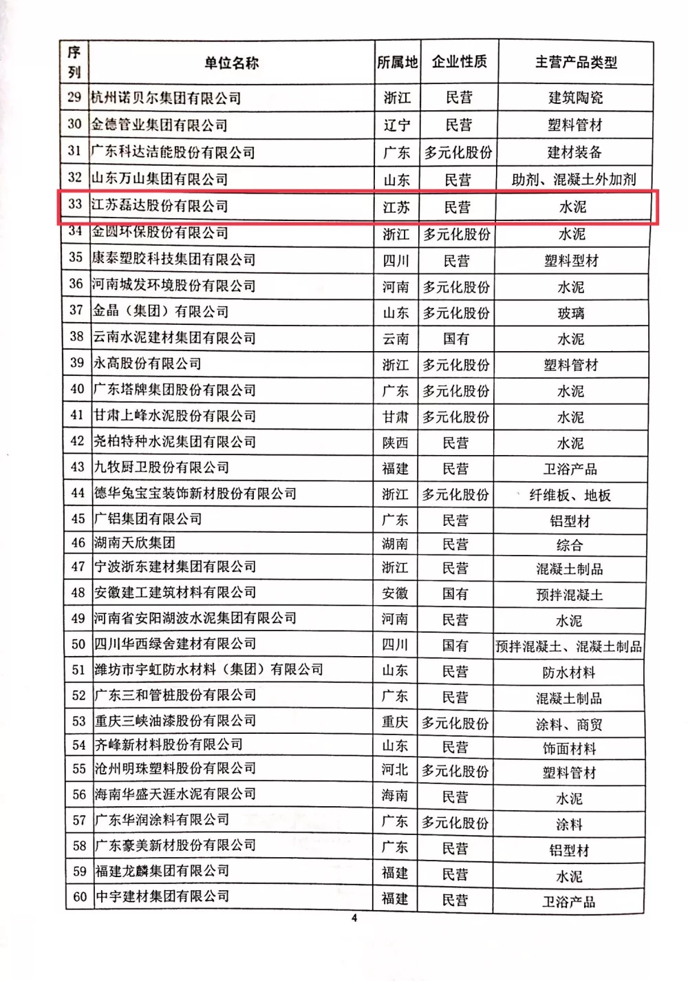 11月9日,具有行业权威发布权的中国建筑材料企业管理协会在北京举行颁奖授牌仪式,向获得2018年度中国建材企业500强、中国建材服务业100强、中国民营建材企业100强、园区20强授牌表彰,江苏磊达股份有限公司再度被授予中国建材企业50强和中国民营建材企业20强,名次分别由第46位、第17位提升到第33位和第11位,这是继2015年磊达集团被中国建材联合会表彰为“中国建材行业转型升级成效显著企业”之后,连续3年在全国建材行业排名列前50强和民营企业前20强。